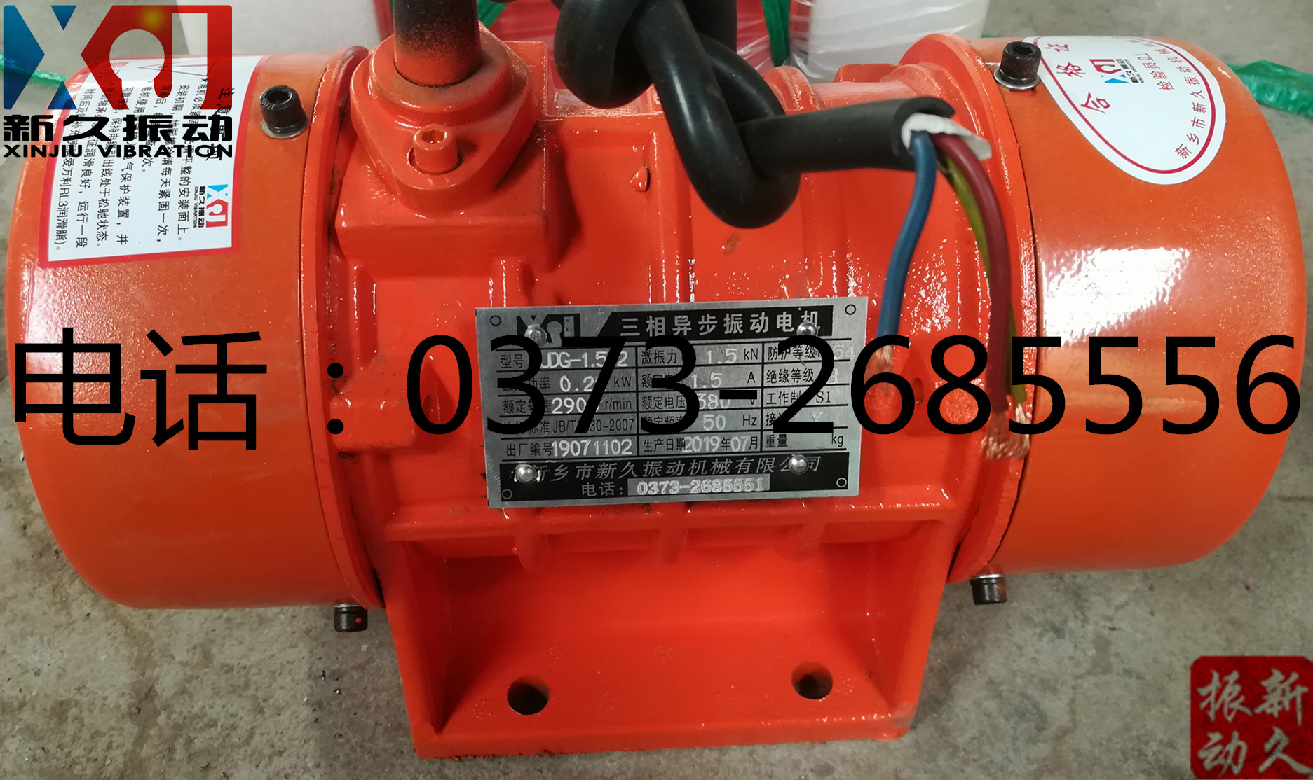 根據貴公司特殊要求訂制的2臺新久牌XJDG-1.5-2型振動電機,已通壹米滴答物流發出。運費、保價費已付清,預計四日左右到達。請保持手機暢通,注意查收。使用前請詳細閱讀振動電機使用維護說明書。