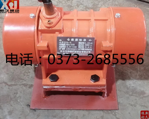 備注:ZFB-5型系ZFB系列倉壁振動器。激振力:0-3kN,振動頻率:3000r/min,功率:0.25kW,電壓:380v,電流:0.6A,是料倉、料罐、料斗、溜槽及輸送管道等設備的理想防閉塞裝置。