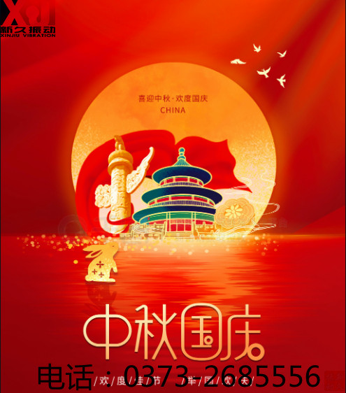 國慶中秋雙節(jié)即將來臨,新鄉(xiāng)市新久振動機械有限公司全體員工祝福您,愿你:一笑煩惱跑,二笑憂愁消,三笑心情好,四笑不變老,五笑興致高,六笑幸福繞,七笑快樂到,八笑收入好,九笑步步高,十全十美樂逍遙。