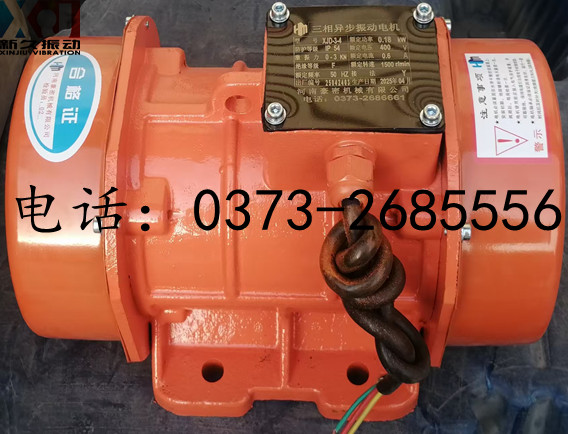 備注:XJD-3-4型系XJD系列臥式振動電機,激振力:0-3kN,轉速:1500r/min,功率:0.18kW,電壓:400v,電流:0.6A,可作為倉壁振動器、振動平臺、真空壓振成型機等機械設備的激振源和動力源。